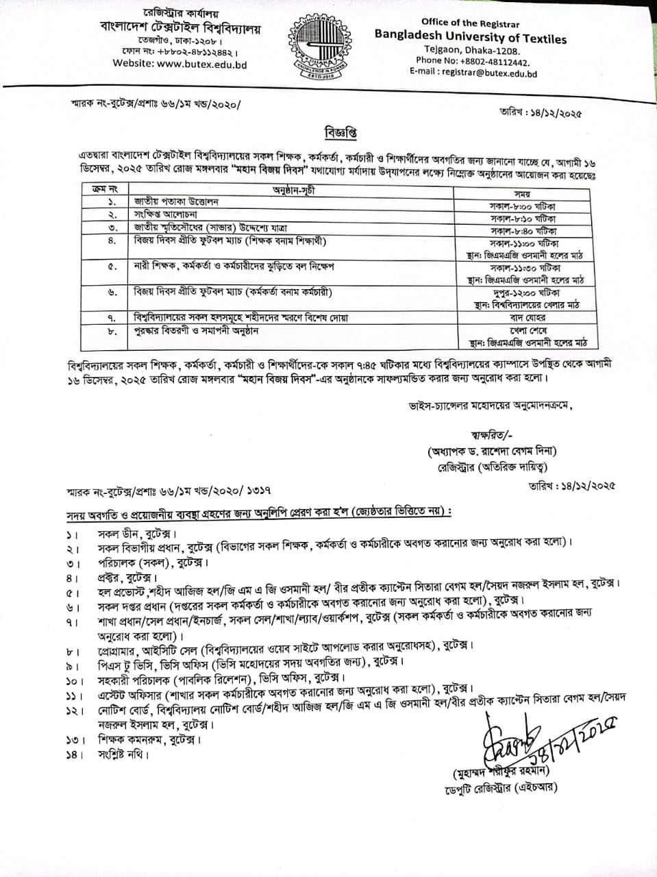 15 Dec 2025 আগামী ১৬ ডিসেম্বর ২০২৫ তারিখ “মহান বিজয় দিবস’ যথাযোগ্য মর্যাদায় উদযাপনের লক্ষ্যে অনুষ্ঠান Administrative Notices News