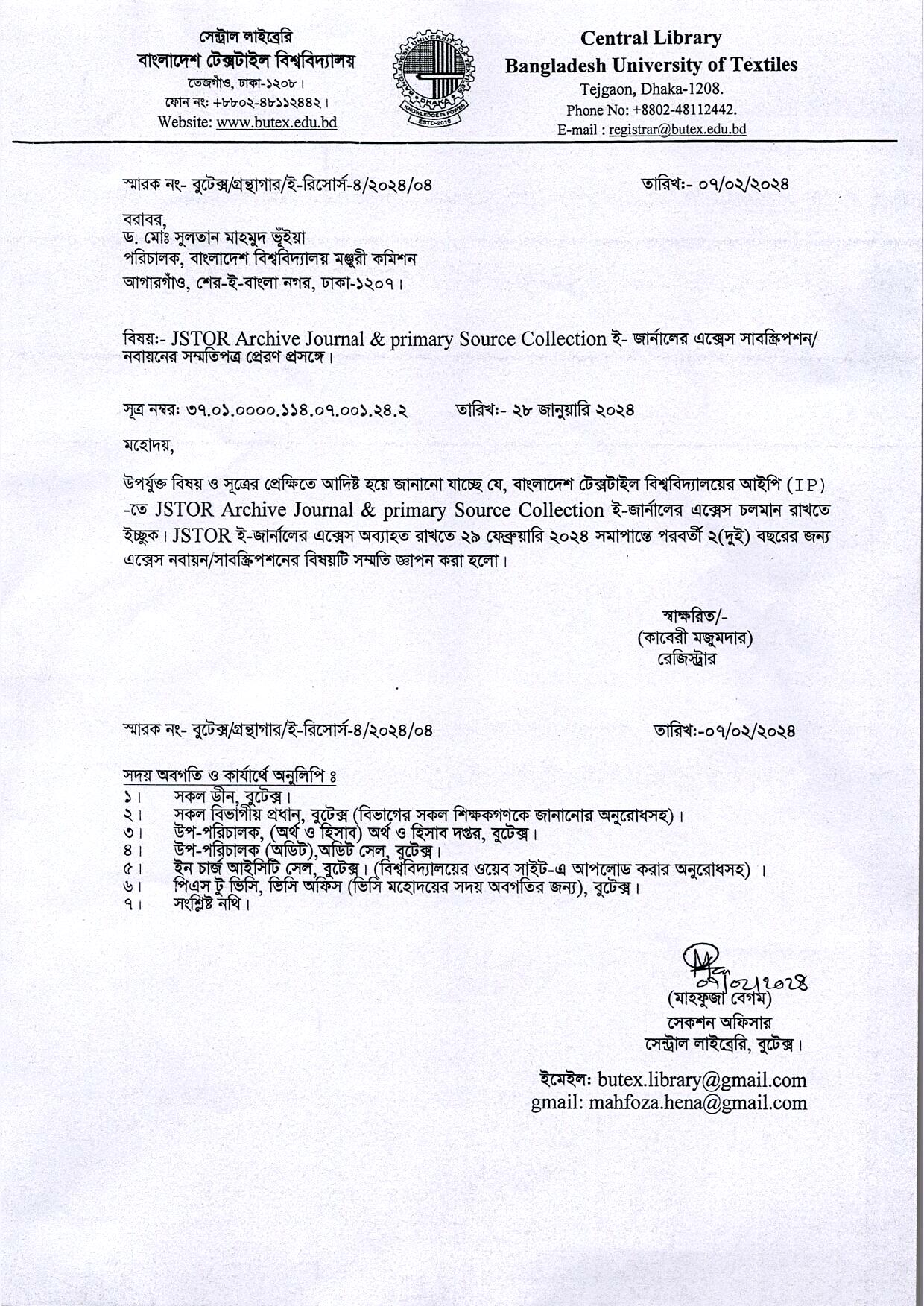 ই-জার্নালের এক্সেস সাবস্ক্রিপশন/নবায়নের সম্মতিপত্র