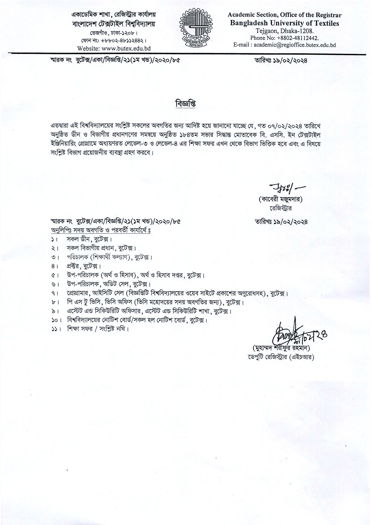 বিভাগ ভিত্তিক শিক্ষা সফর বিজ্ঞপ্তি