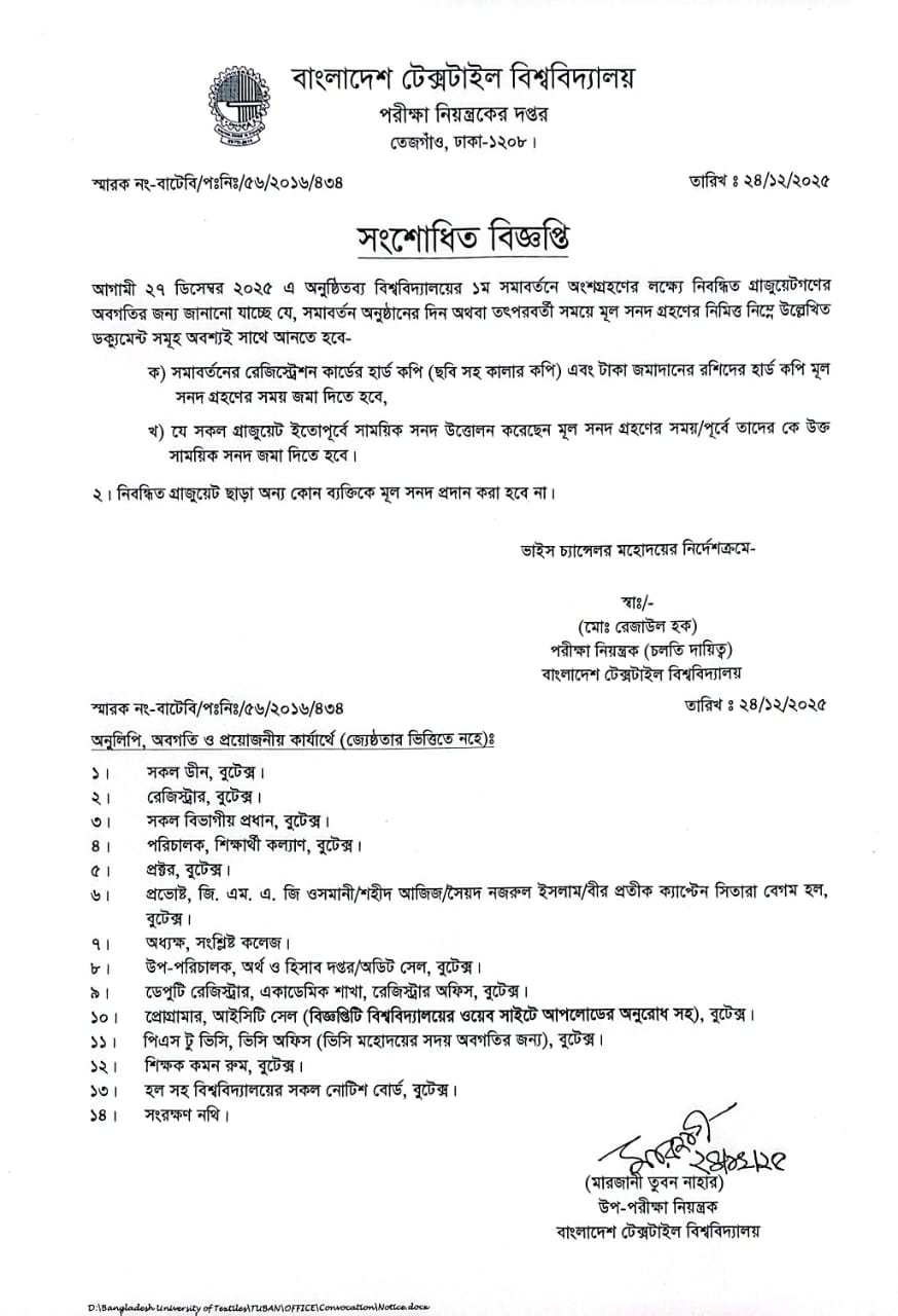 24 Dec 2025 সমাবর্তন-২০২৫ অনুষ্ঠানের পূর্বে মূল সনদ ইস্যুর জরুরী বিজ্ঞপ্তি Academic Notices, Convocation Updates News