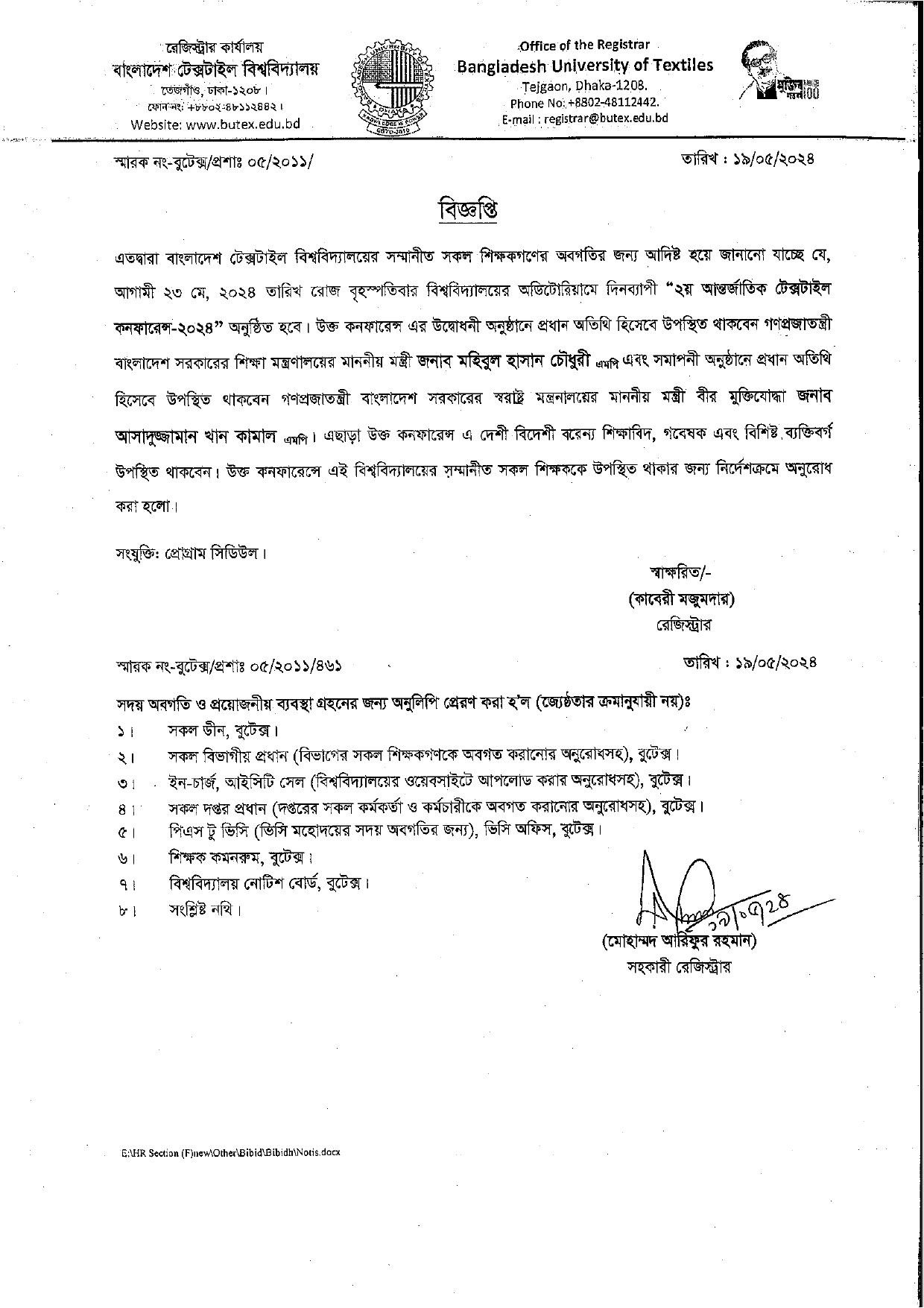 20 May 2024 “2nd International Textile Conference-2024″ will be held on 23 May 2024 “2nd International Textile Conference-2024″ will be held on 23 May 2024 Administrative Notices News
