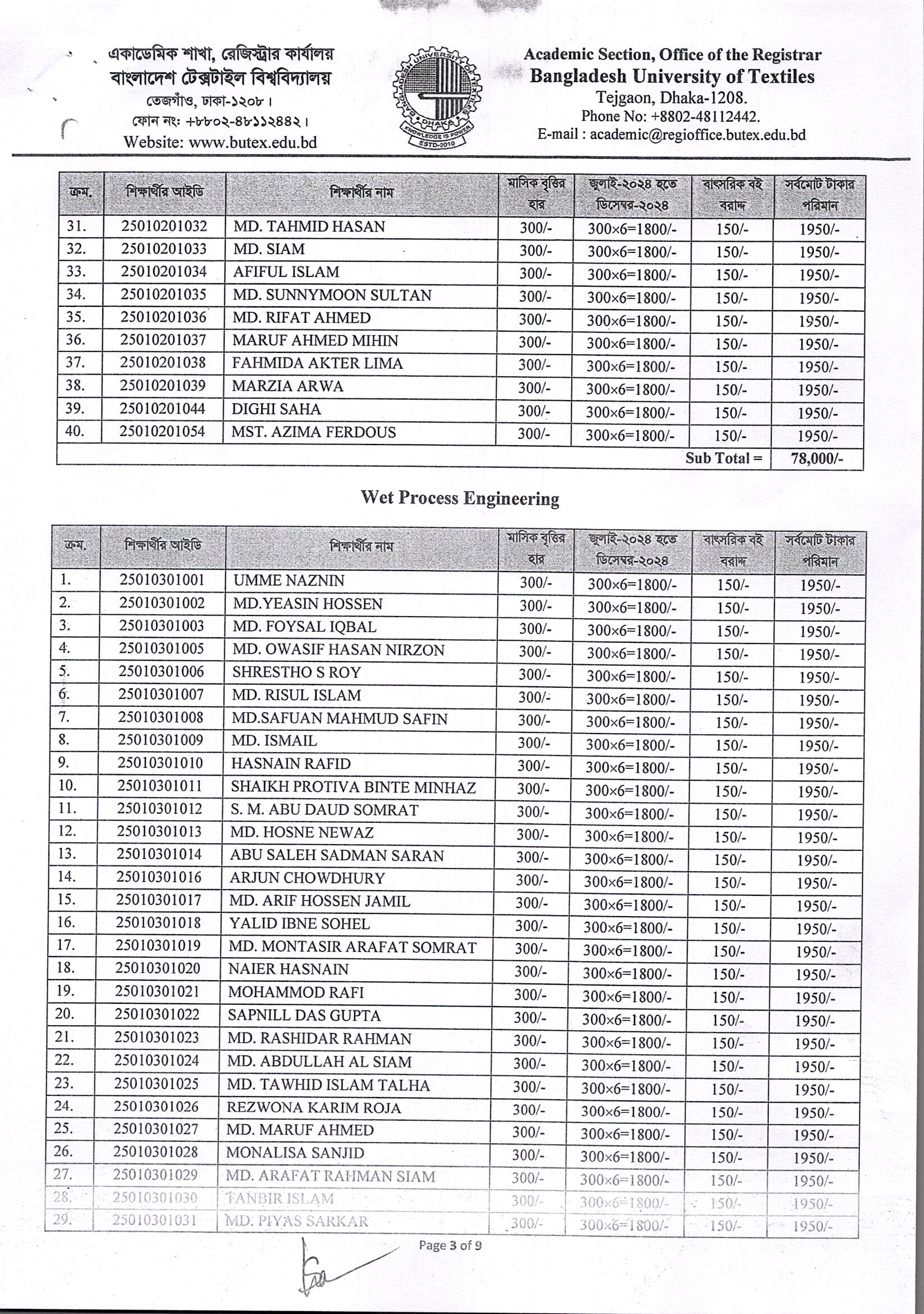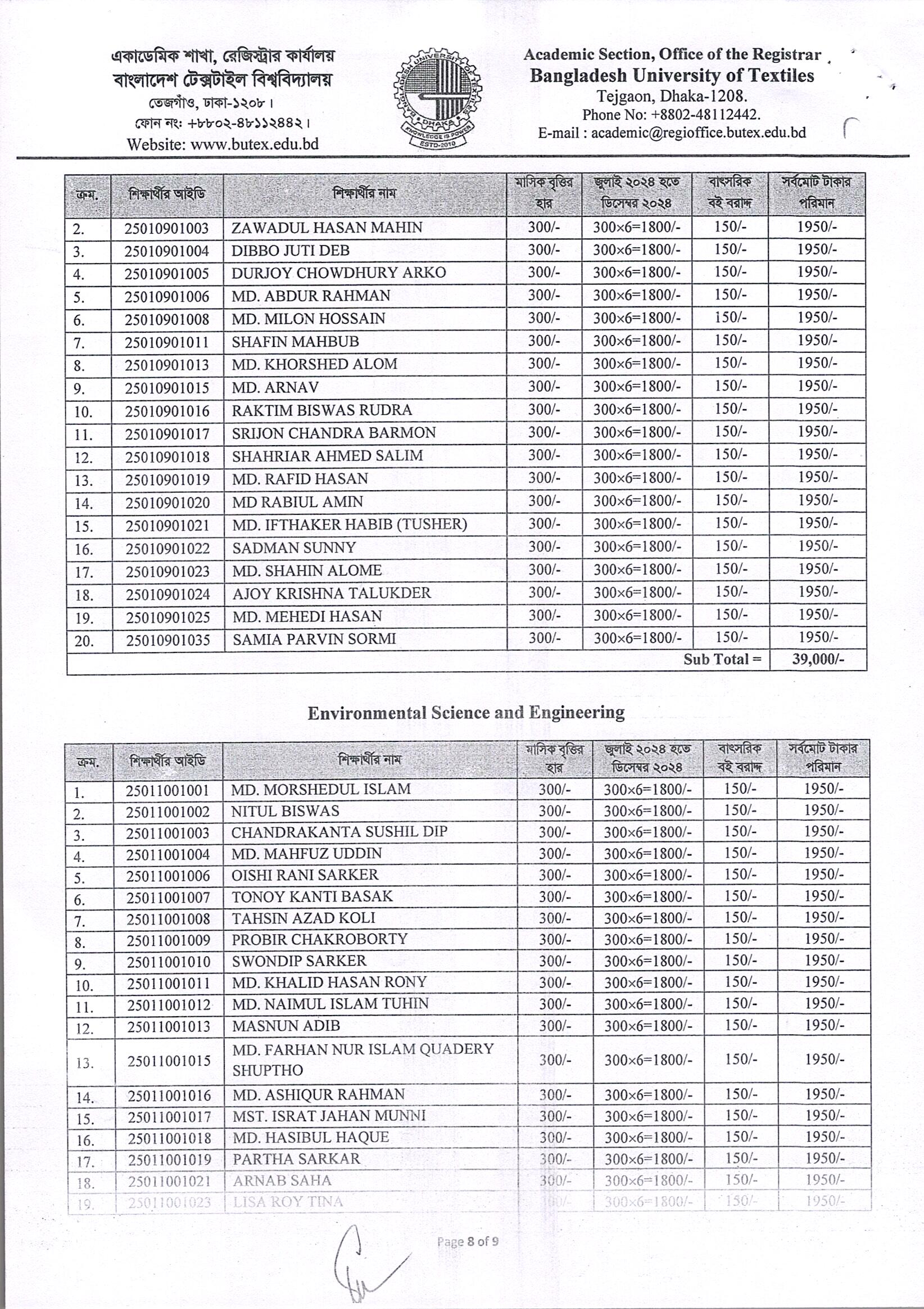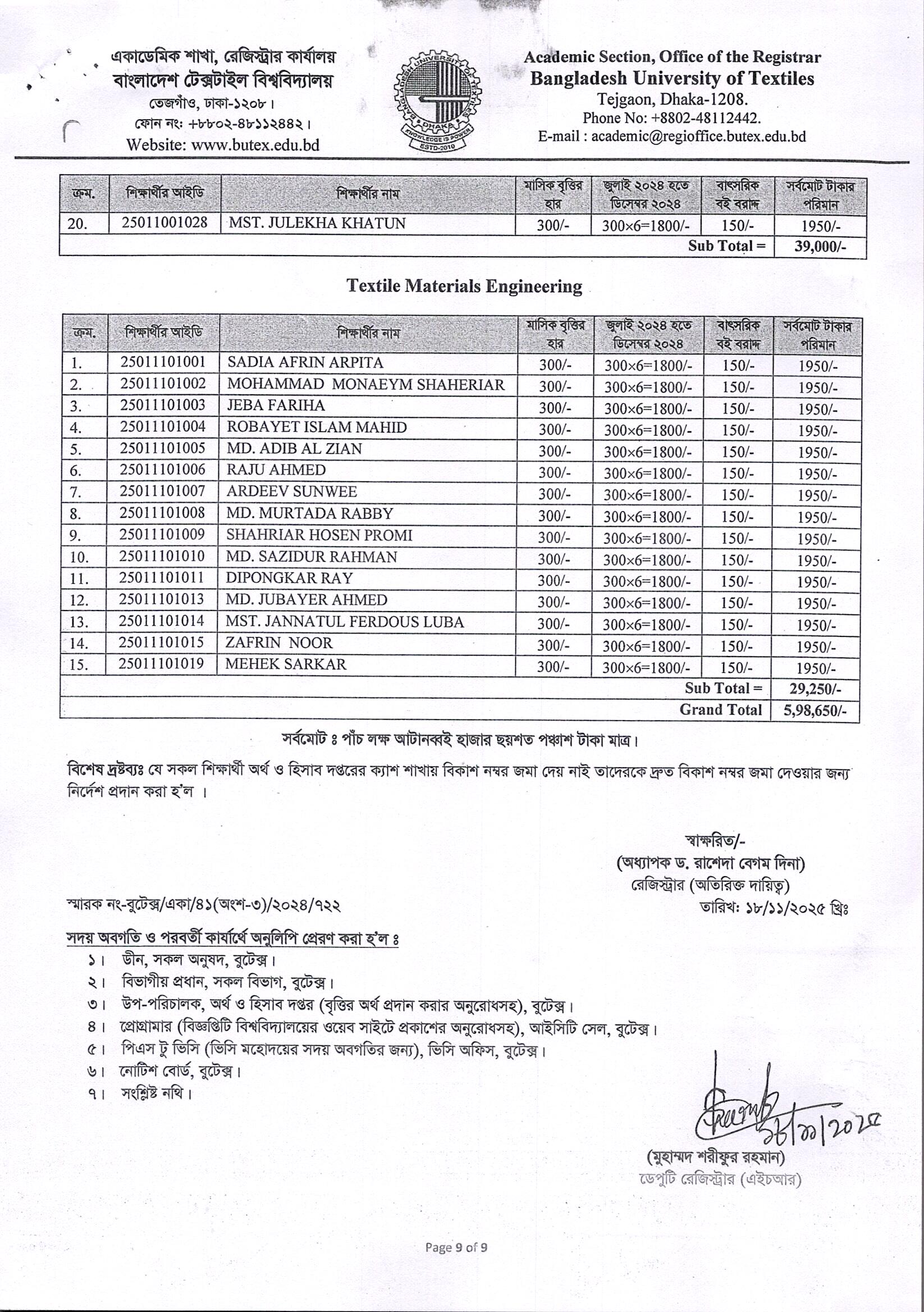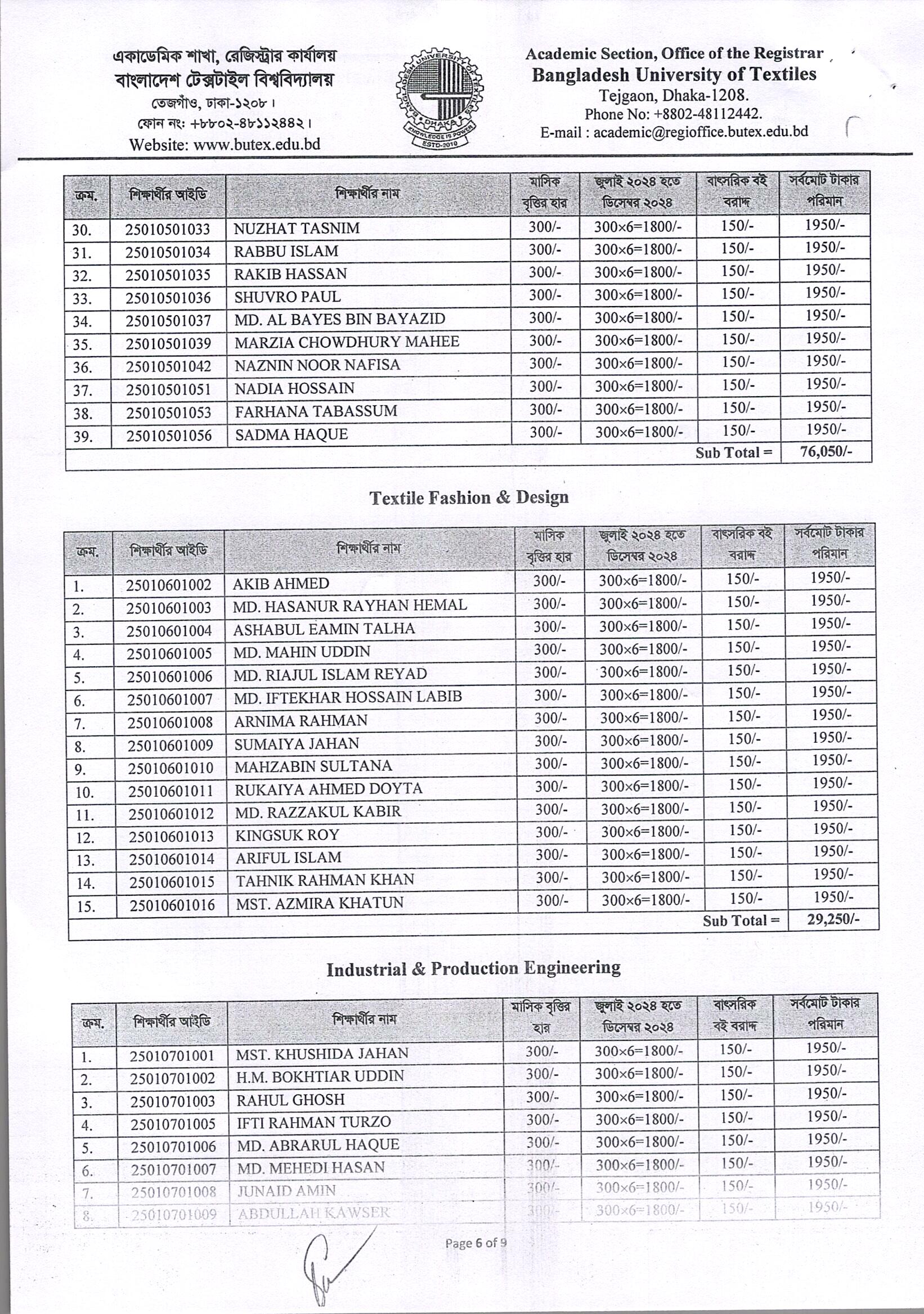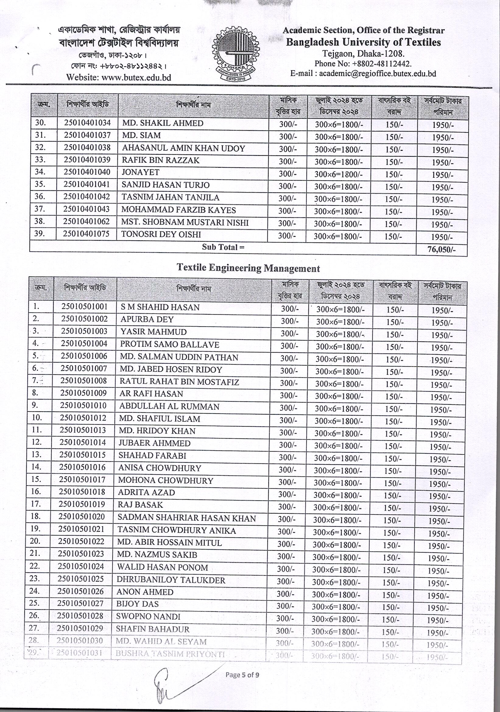 19 Nov 2025 Academic Scholarship of BSc in Textile Engineering L1-T1 Academic Notices, Undergrade Admission News