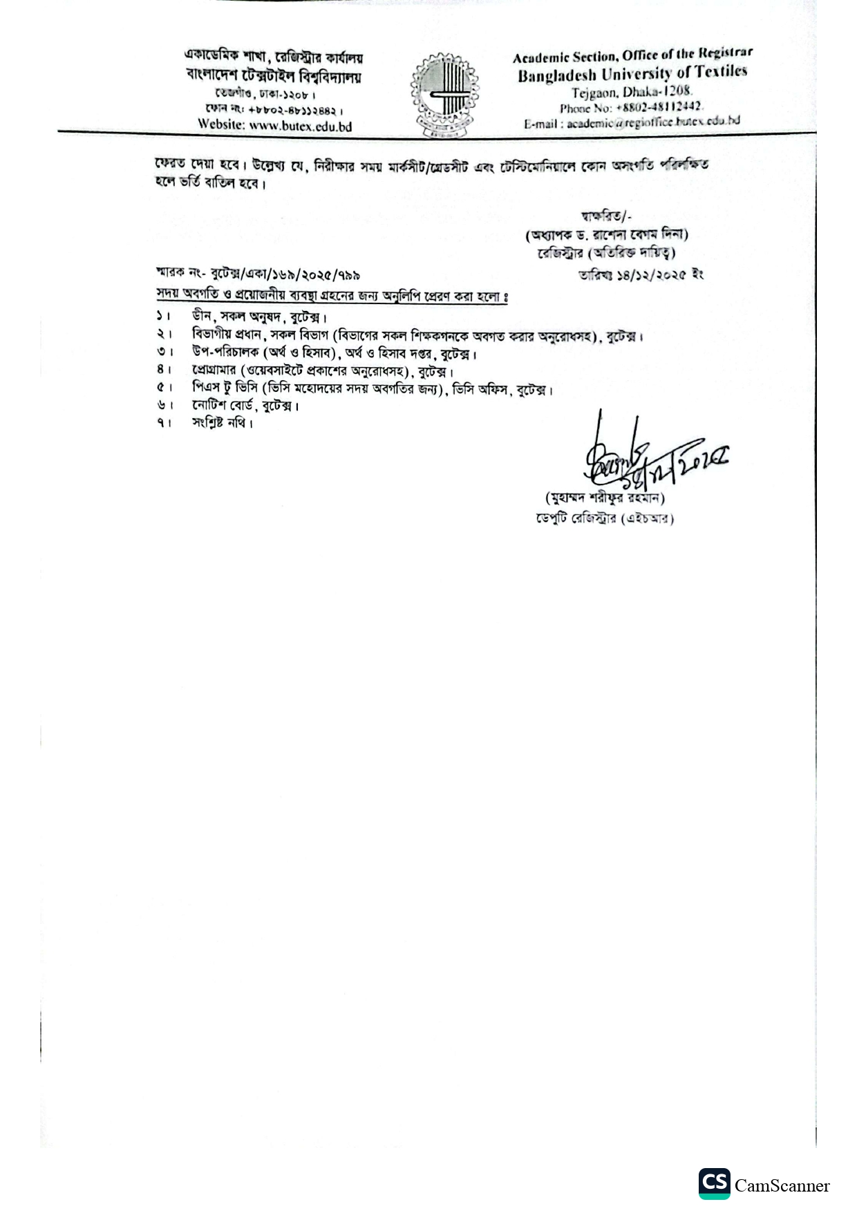 Admission Helpline : +88 01500121121 , +88 01554926220 | Email : info@butex.edu.bd