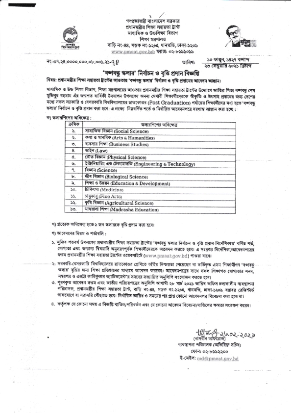 “Bangabandhu Scholar” Selection & Scholarship For Post Graduate Students