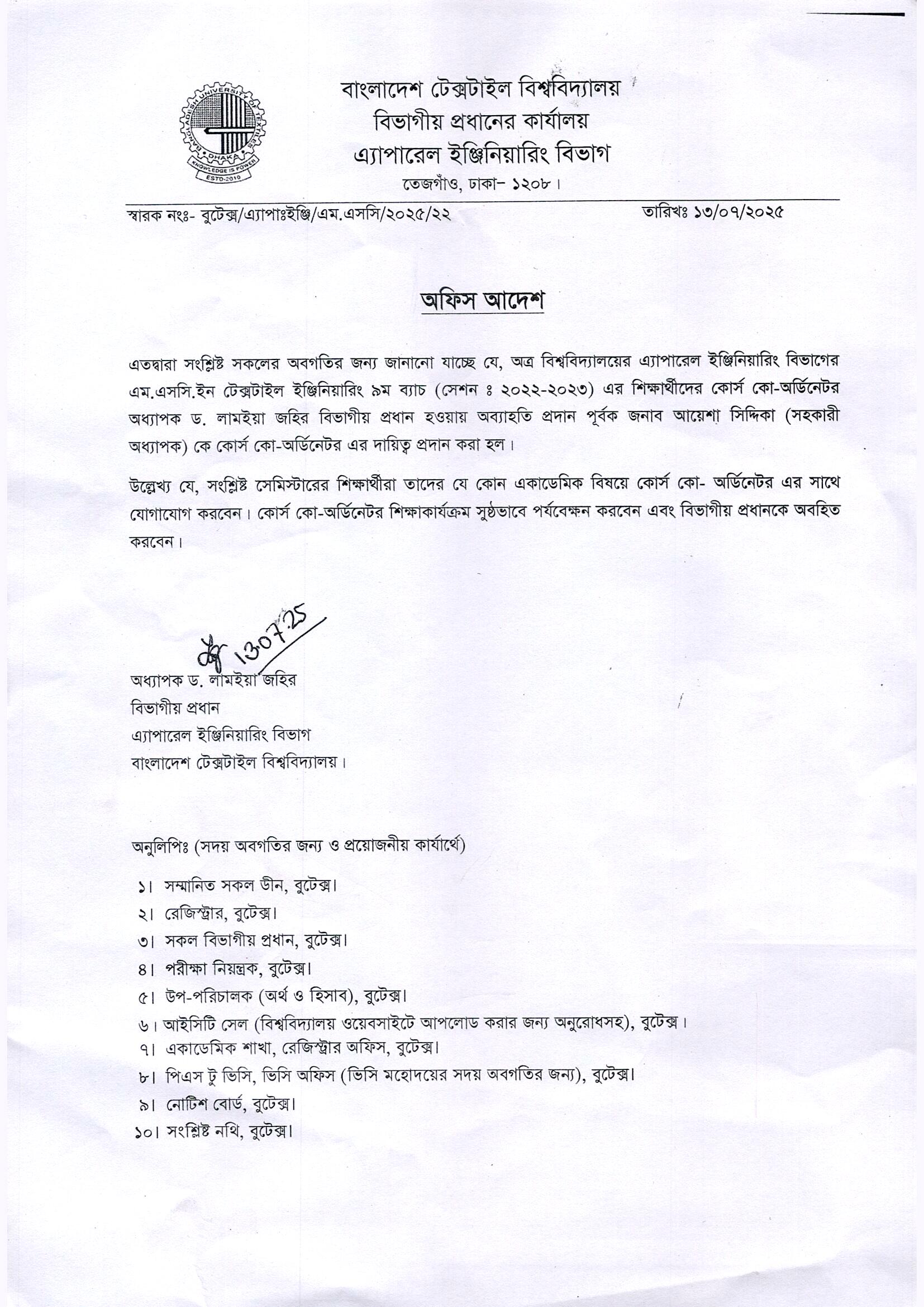 Course Co-Ordinator Notice of AE Dept. (9th Batch)