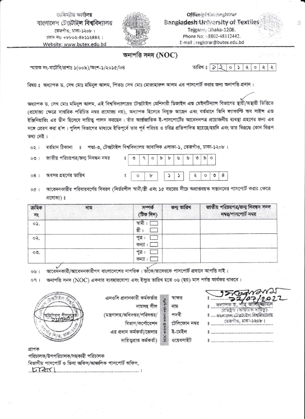 NOC: Dr. Shaikh Md. Mominul Alam, Dean, Faculty of Science & Engineering