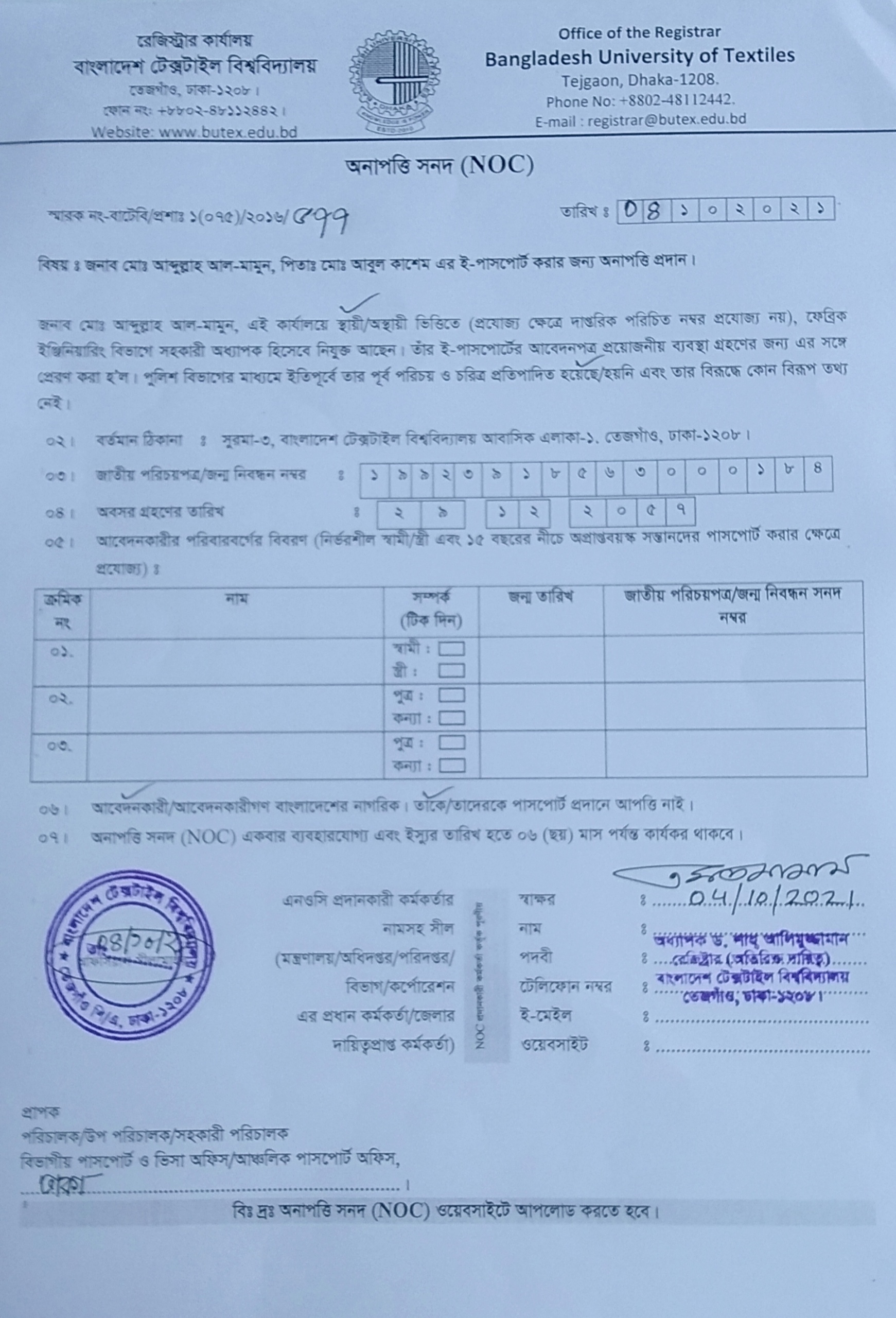 NOC: Md. Abdullah Al. Mamun, Assistant Professor, DoFE