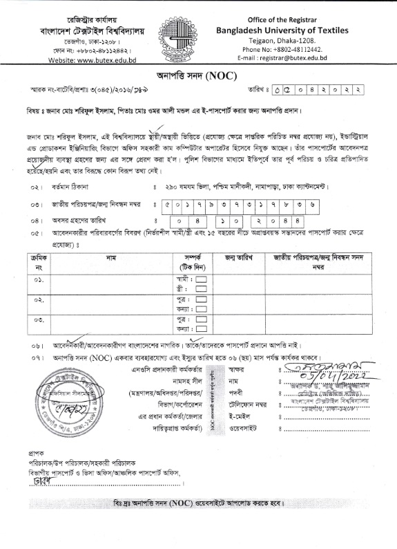 NOC: Md. Shoriful Islam, Office Assistant Cum Computer Operator, DoIPE