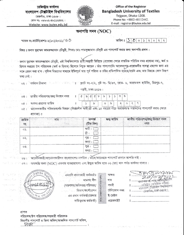 NOC: Muhammad Kamruzzaman Chowdhury, Deputy Director (Finance & Accounts)