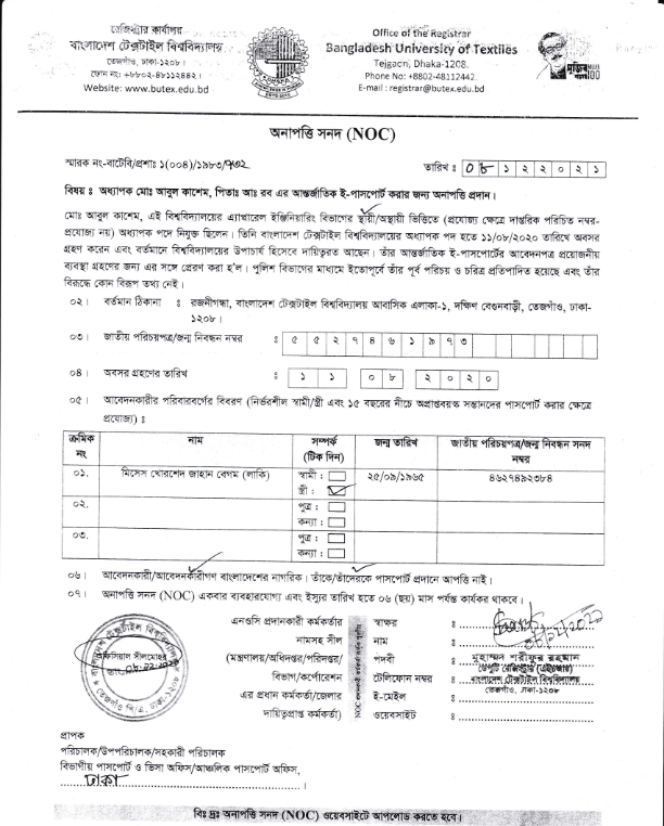 NOC: Professor Md. Abul kashem, Vice Chancellor, BUTEX