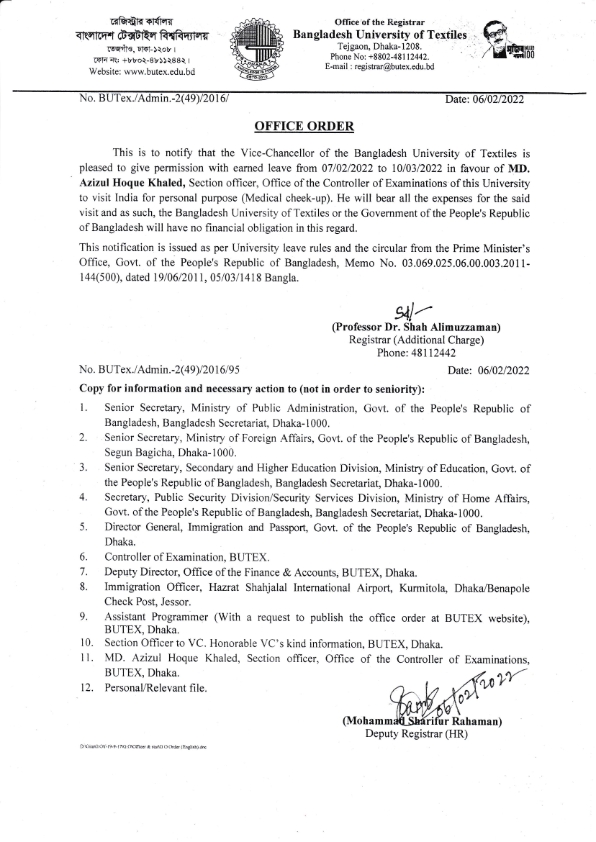 Office Order: Md. Azizul Hoque Khaled, Section Officer