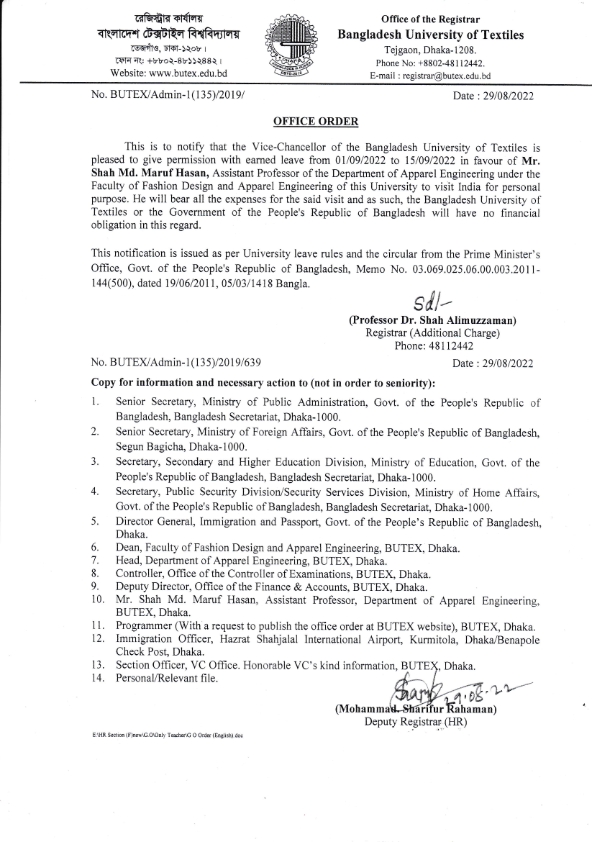 Office Order: Shah Md. Maruf Hasan, DoAE