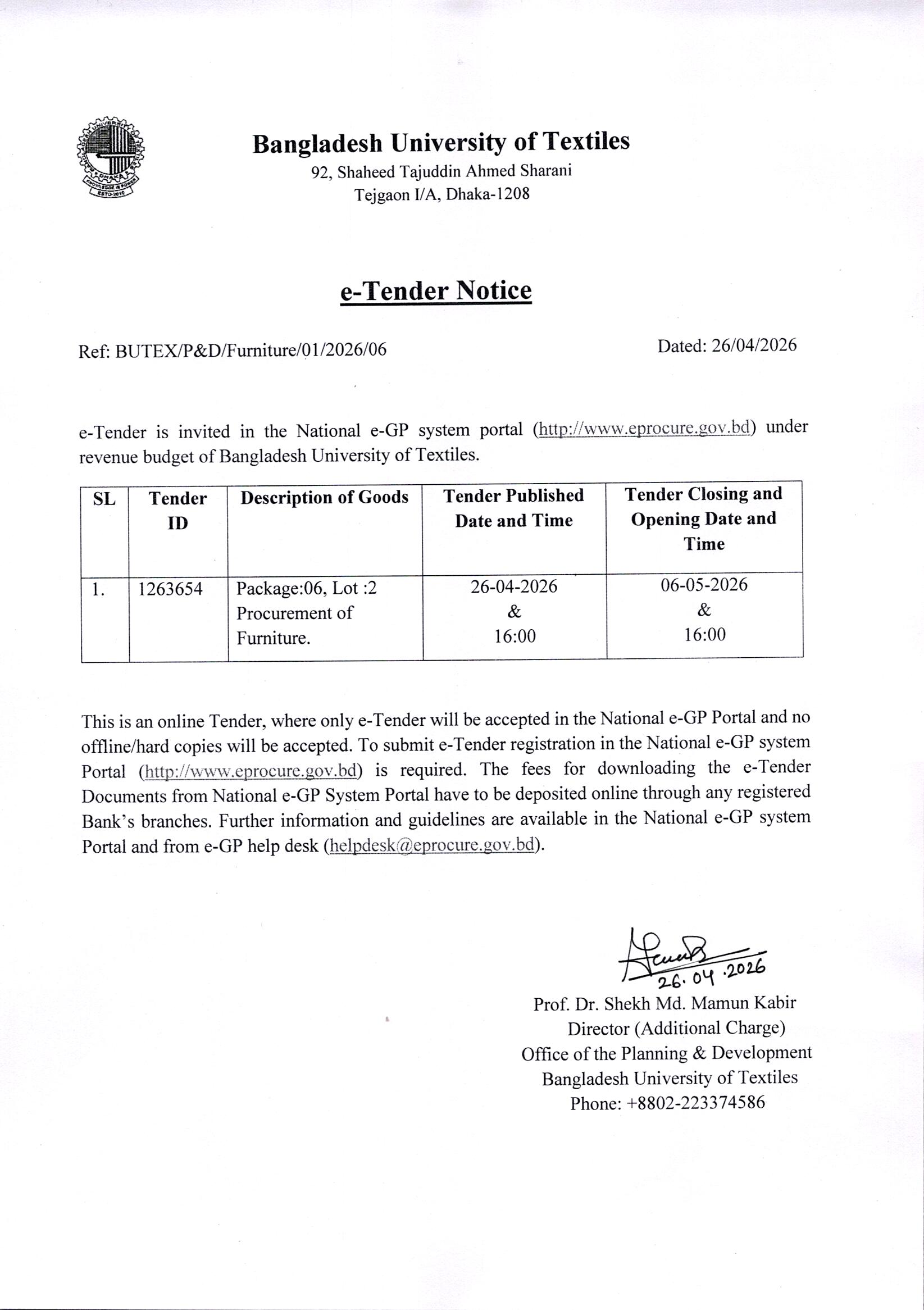 e-Tender Notice Dated: 26/04/2026