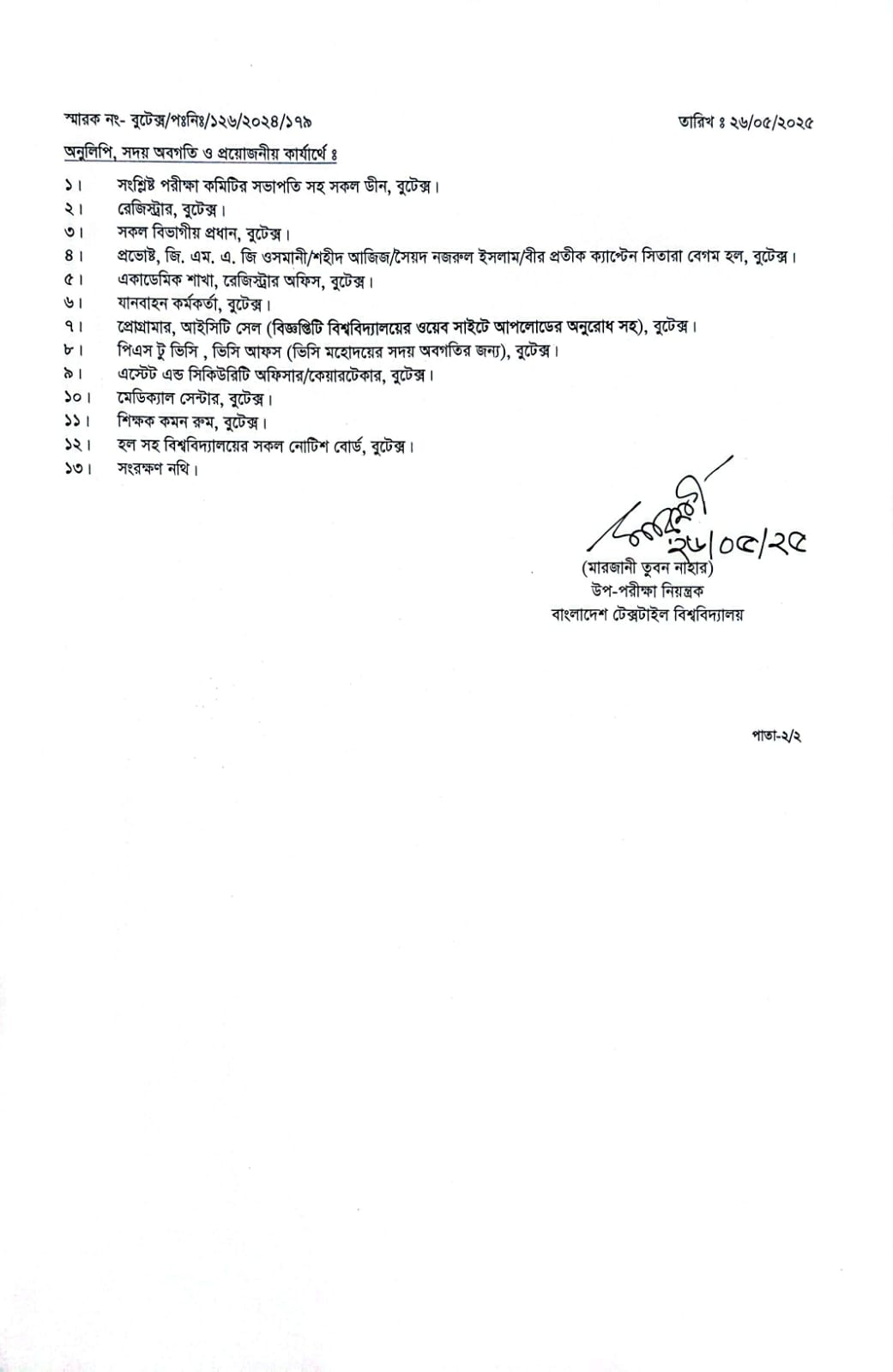 Exam Schedule: BSc in Textile Engineering L-4 T-2 Exam-2023