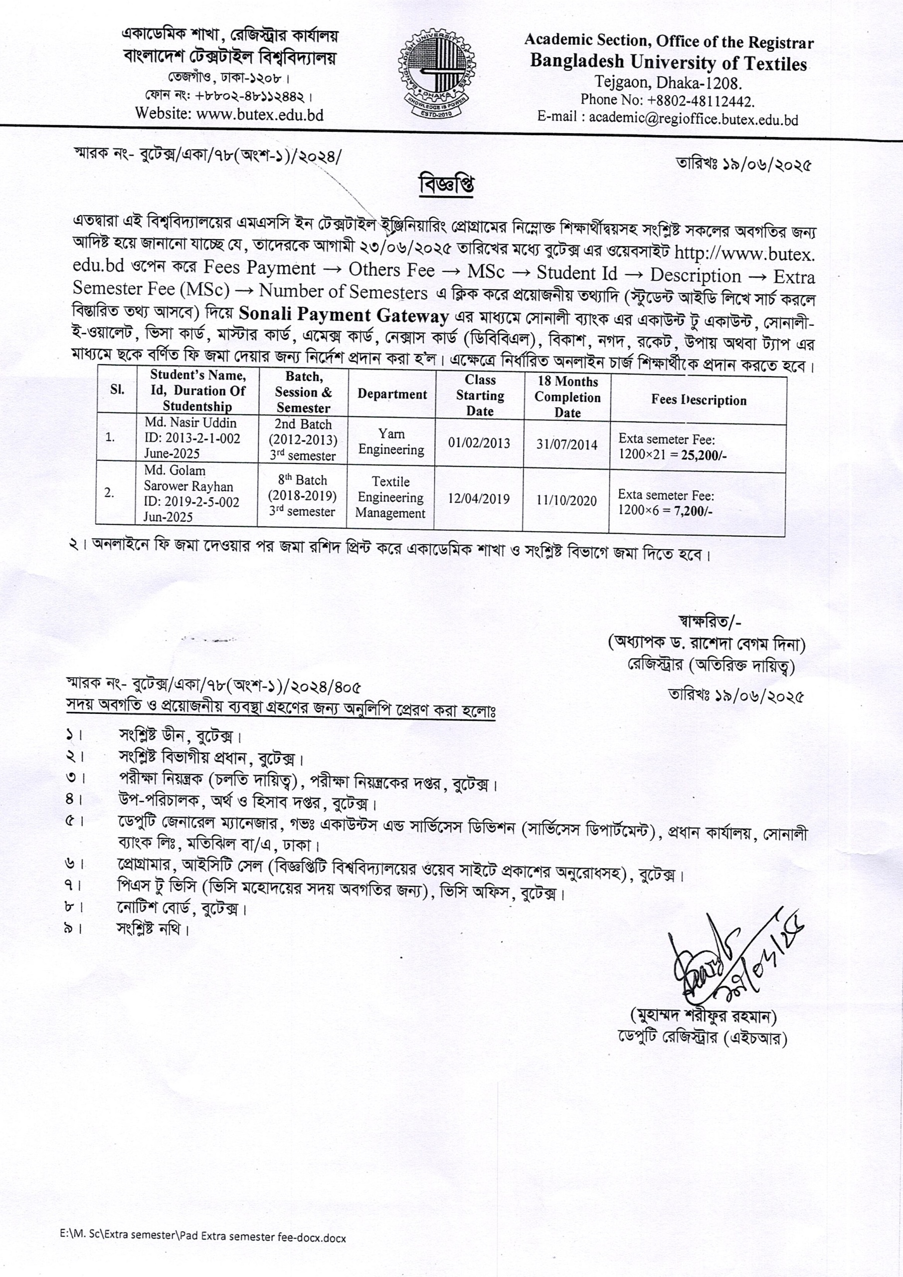 • Admission Cancellation Notice of BSc in Textile Engineering Dated: 12/10/2025 October 12, 2025