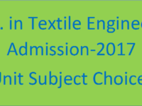 Admission Notice: B. Sc. in Textile Eng. Admission-2017 ‘A’ Unit Subject Choice List