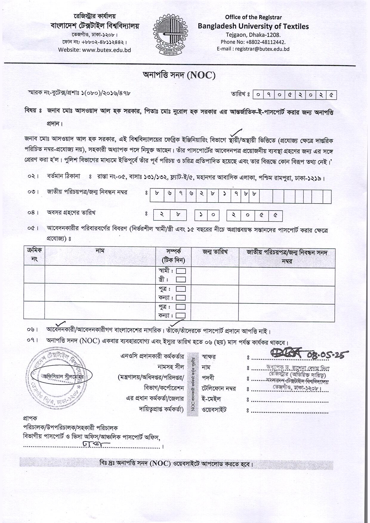 NOC: Md. Aswad Al Haque Sarker, Assistant Professor, DoFE