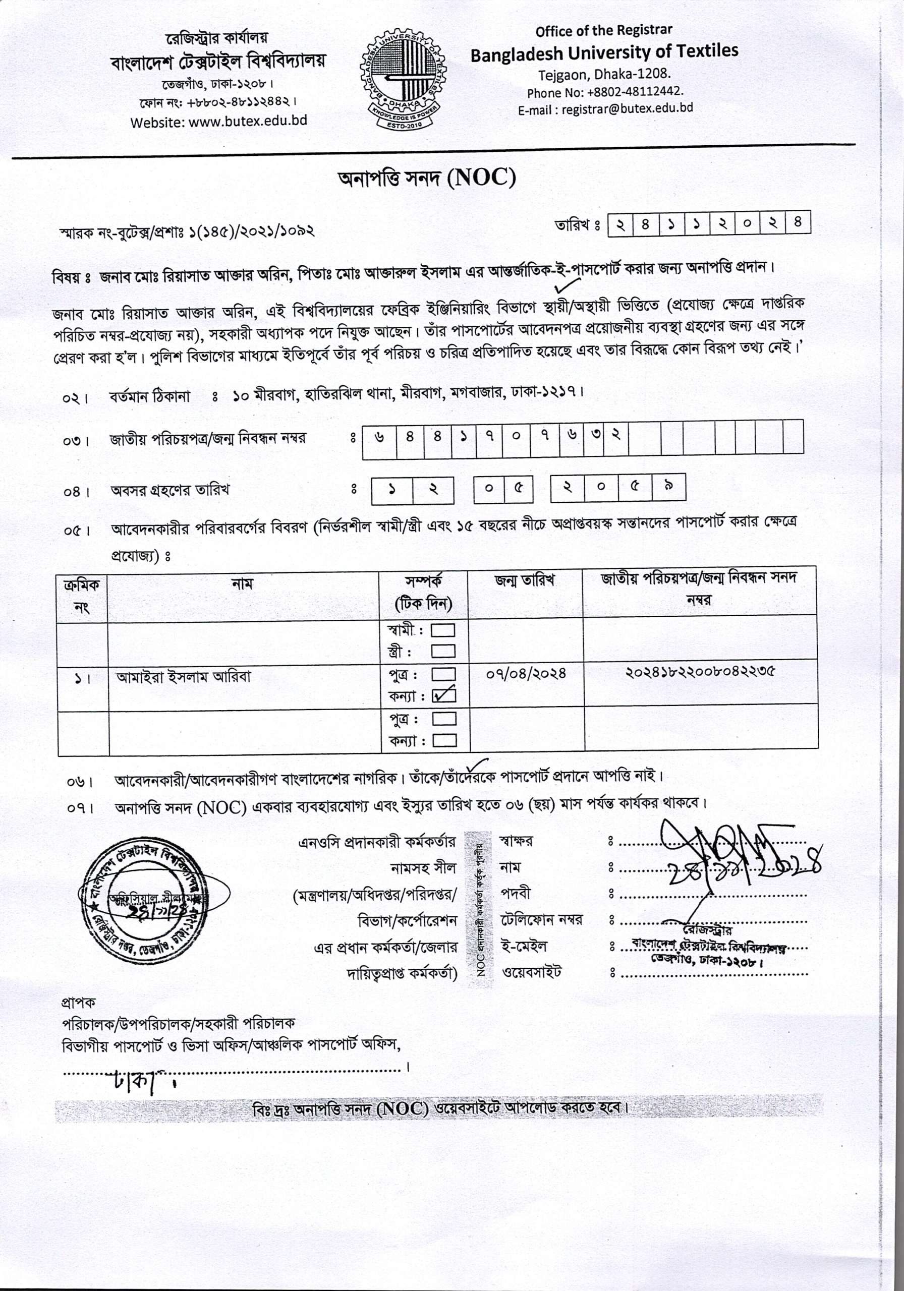NOC: Md. Reasat Aktar Arin, Assistant Professor DoFE