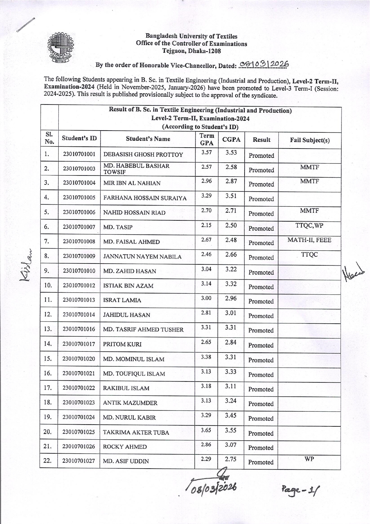 • Result of MSc in Textile Engineering Semester-II Exam-2024 April 16, 2026