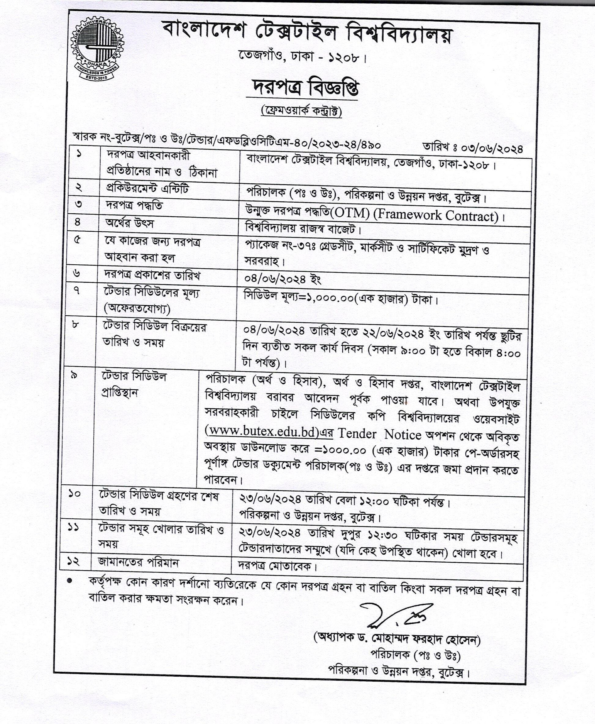 10 Jun 2024 Tender Notice (Framework Contract), Dated 03-06-2024 Tender News Download Tender Document of Package-37