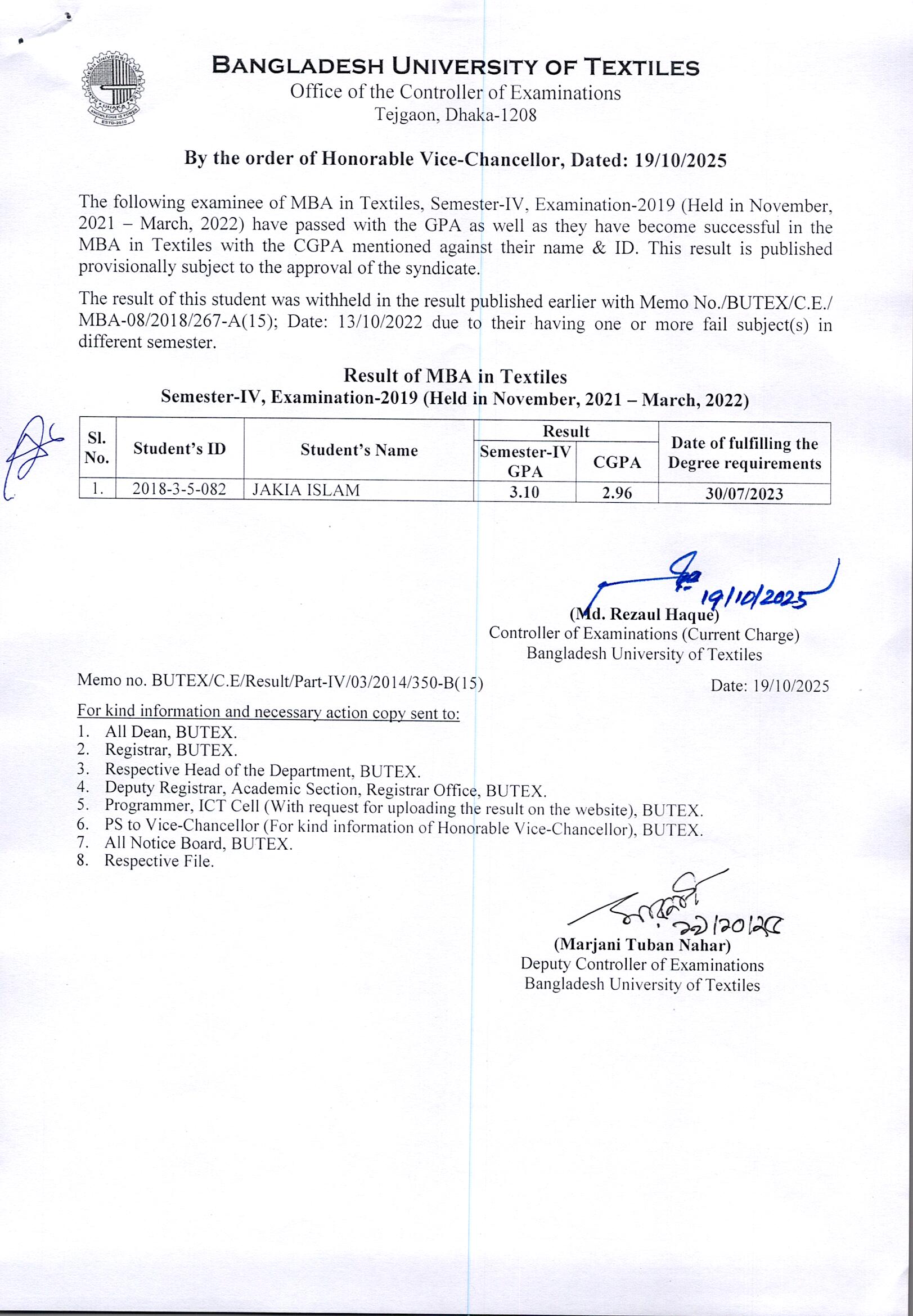 19 Oct 2025 Withheld Result of MBA in Textiles Semester-IV Exam-2019 Postgraduate Admission, Published Results News